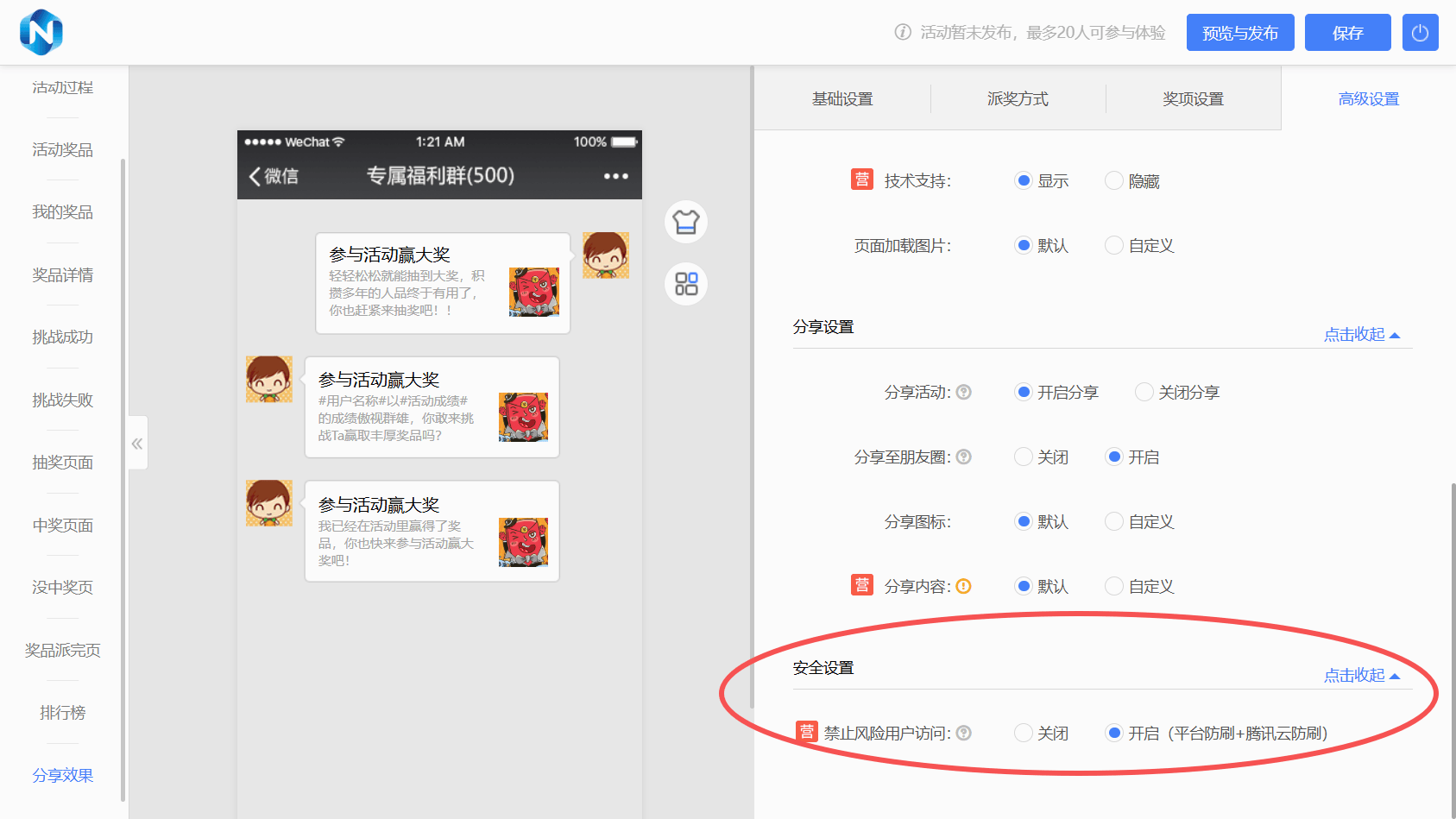 ? 插件減法:不用加太多交互插件,比如 “彈幕”“評論”“分享統計”,如果不是核心需求,能刪就刪;尤其是免費工具的插件,很多沒經過優化,會拖慢速度? 頁面減法:H5 頁面數量控制在 5 頁以內,比如抽獎活動只做 “活動規則→抽獎頁面→中獎結果”3 頁,不用加太多介紹頁,用戶能快速完成流程。